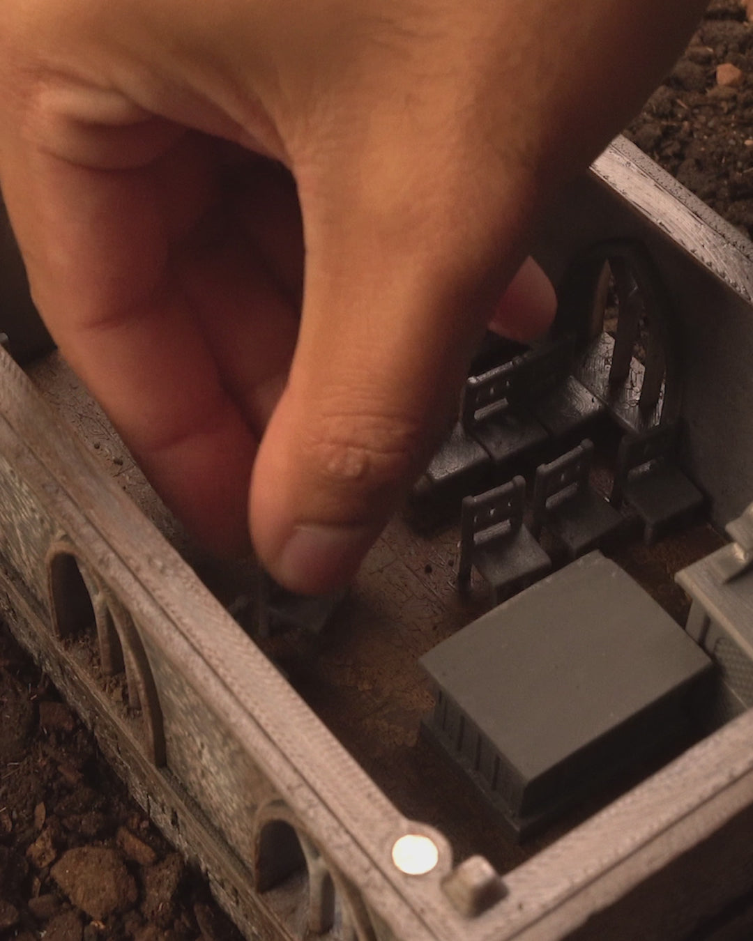 Produzida em PLA, material resistente e sustentável, a capela preserva as texturas e marcas naturais da impressão 3D, reforçando seu caráter artesanal e único.